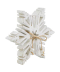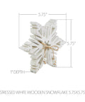 Bring cozy winter vibes to your space with this charming Distressed Wooden Snowflake. At 5.75x5.75 inches, it's the perfect size for shelves, mantels, or tabletops. The carved design showcases a delicate snowflake pattern, while the whitewash finish with warm tan distressing gives it that coveted rustic-cabin aesthetic.