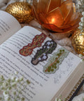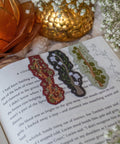These magnetic wand bookmarks come with a shiny laminated finish and slim magnets that wrap around the whole design on both sides, leaving just a tiny non-magnetic flap at the top to secure your page.